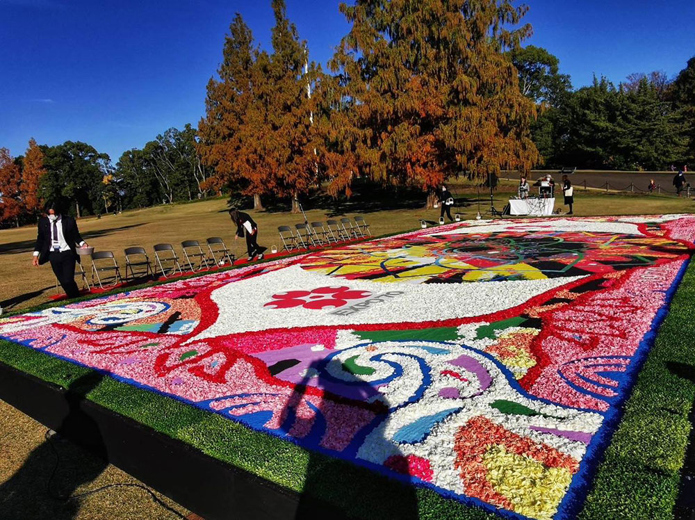 6色約40000本のカーネーションの花びら、約260キロのカラーサンドを使用して描かれた