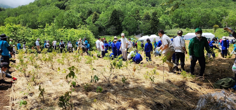 ・さて、今回のテーマであります「森」といえば、“ABMORI”が当町で代表的な取組になります。今から9年前の2017年、海老蔵さんの呼びかけに賛同された阿部知事や溝畑理事長から植樹会場として山ノ内町の受け入れ可能かどうか打診があり、二つ返事で賛同して始まったものであります。『後世に残そう森・水・いのち~志賀高原から世界へ未来へ~』がイベントコンセプトでこれまで8回の植樹で6万5千本の植樹を行ってきました。明日、参加される皆様は直にご覧いただけます。