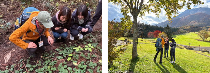 2日目は、「森林セラピー」発祥の地とも言える信濃町で、実際にガイド一緒に森を歩いていただき、草木の香り、鳥の声、川の水の冷たさなどを体験いただいた。「森林セラピー」は、心身の健康や想像力、道徳観などが養われることが科学的に確かめられており、生徒にも実際に体験して自分の変化を感じて欲しい。